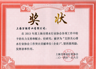 上海市排水行業協會評為“支持關心排水行業協會工作突出貢獻單位”