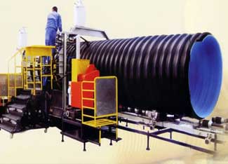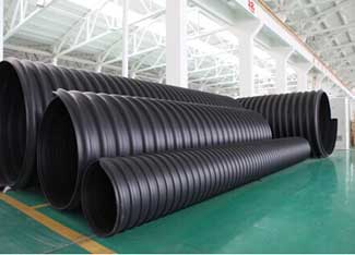 鋼帶增強聚乙烯螺旋波紋管是一種HDPE與鋼帶熔融復合的結構壁管,管壁結構由三個層次構成:內層是一個連續實壁內層管,內層管外纏繞復合有用鋼帶折成倒“U”型的環形波狀鋼帶增強體,在涂復波狀鋼帶增強體外復合有與鋼帶增強體外復合有與鋼帶增強體波形相同的HDPE外層。新型結構和科學合理的成型工藝,是眾多塑料結構管材暗道中剛性最高的管材。