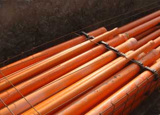 PVC-C埋地式高、低壓電力電纜保護套管的產(chǎn)品性能大大優(yōu)于傳統(tǒng)的石棉電纜排管及普通PVC管材,是傳統(tǒng)電力電纜護套管的理想替代產(chǎn)品。廣泛用于城市電闖建設(shè)和改造;城市市政改造工程;民航機場工程建設(shè) 工業(yè)園區(qū)、小區(qū)工程建設(shè);交通、路橋工程建設(shè)城市路燈電纜敷設(shè)。