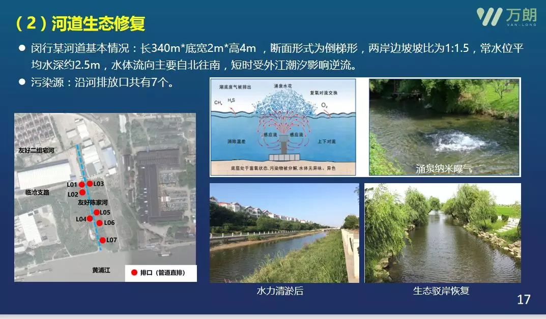 河道生態化治理:環保清淤/底泥無害化處置—生態護坡/水下草坪—原位微納米曝氣/生物活化