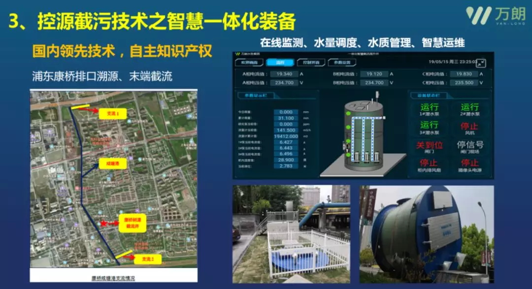 樊雪蓮認為,污水處理廠的提質增效,管網起了非常大的作用。核心在管網,關鍵在排口,主要是“截”,由最早的現澆鋼砼截流井,到預制一體化泵站井,再到多功能智能一體化控源截污設備,萬朗水務科技集團不斷研發創新,這次推出了智慧一體化控源截污裝備,主要適用居民小區、公共設施(公建三產)、市政和沿河排口旱季污水截流、雨季溢流攔污(截污)以及沿河小區地表雨水徑流污染削減。設備配套相關在線水質、水量檢測以及萬朗智慧水務云平臺,受到客戶青睞和認可,該設備已經在上海的浦東、閔行、嘉定、寶山成功應用。