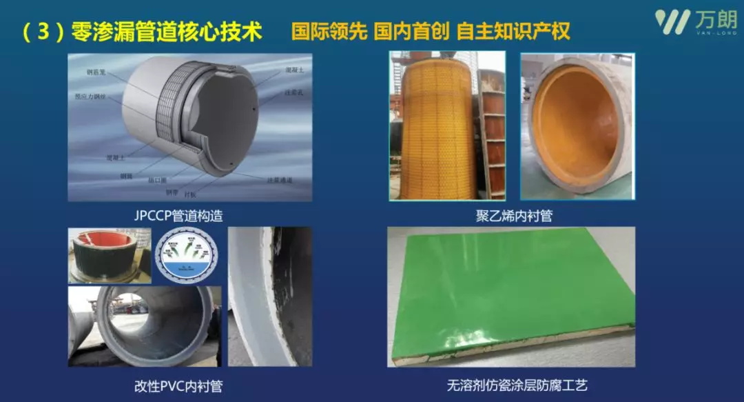 結合大型城市地下構筑物密集、地鐵呈網等特點,及供排水行業對于管網的高要求,萬朗水務科技集團配以智能化技術,開發出JPCCP智能管道、內襯聚乙烯復合管、改性PVC內襯管等零滲漏管道。