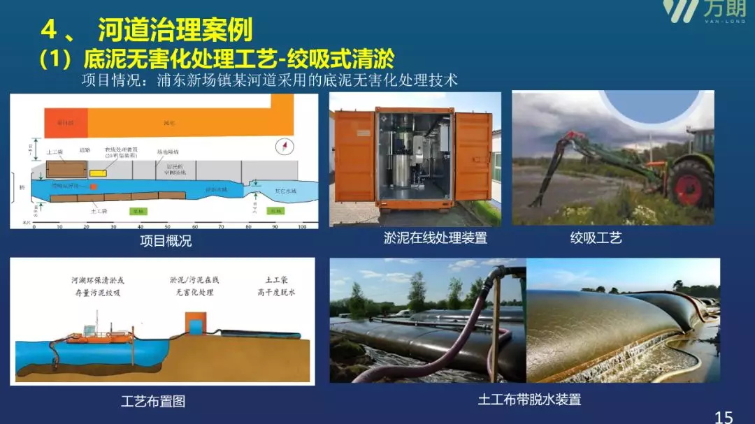 關于河道底泥處置,值得一提的是,萬朗水務科技集團從德國引進的,具有自主知識產權的絞吸式清淤-底泥無害化處理工藝,這套工藝主要解決河道底泥外運、輸送較難問題,在污泥脫水降低外運成本的同時,使河道水質得到提升。