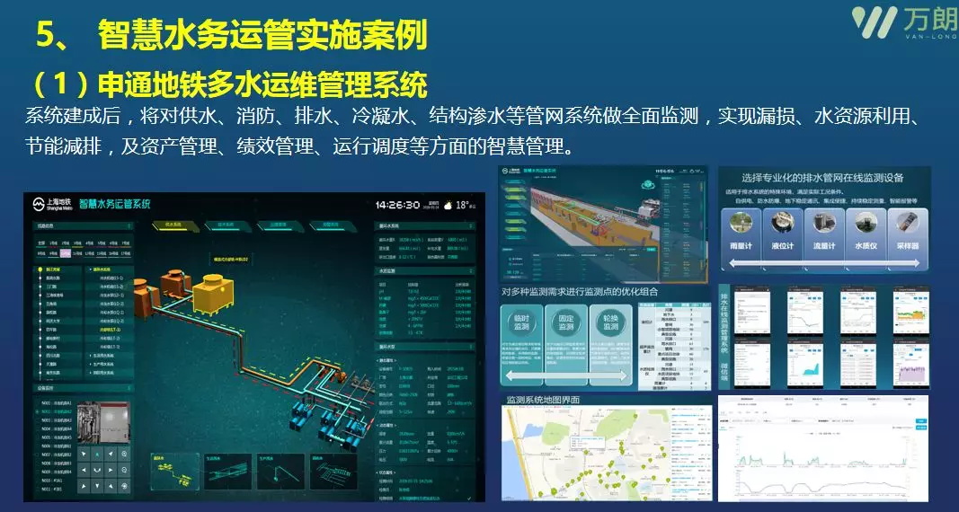 萬朗水務科技集團始終貫徹“無智慧不產品,無智慧不服務”的治理理念。基于大數據分析,萬朗水務科技集團建立地鐵多維統籌系統,得到申通高度好評。系統建成后,將對供水、消防、排水、冷凝水、結構滲水等管網系統做全面監測,實現漏損、水資源利用、節能減排,及資產管理、績效管理、運行調度等方面的智慧管理。