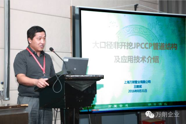 在這次國際研討會上,上海萬朗企業技術部負責人王建斌對大口徑供排水用非開挖JPCCP管材的性能特點、應用前景作了詳盡講解,前景廣闊,受到國際國內水務專家、領導的熱烈歡迎。